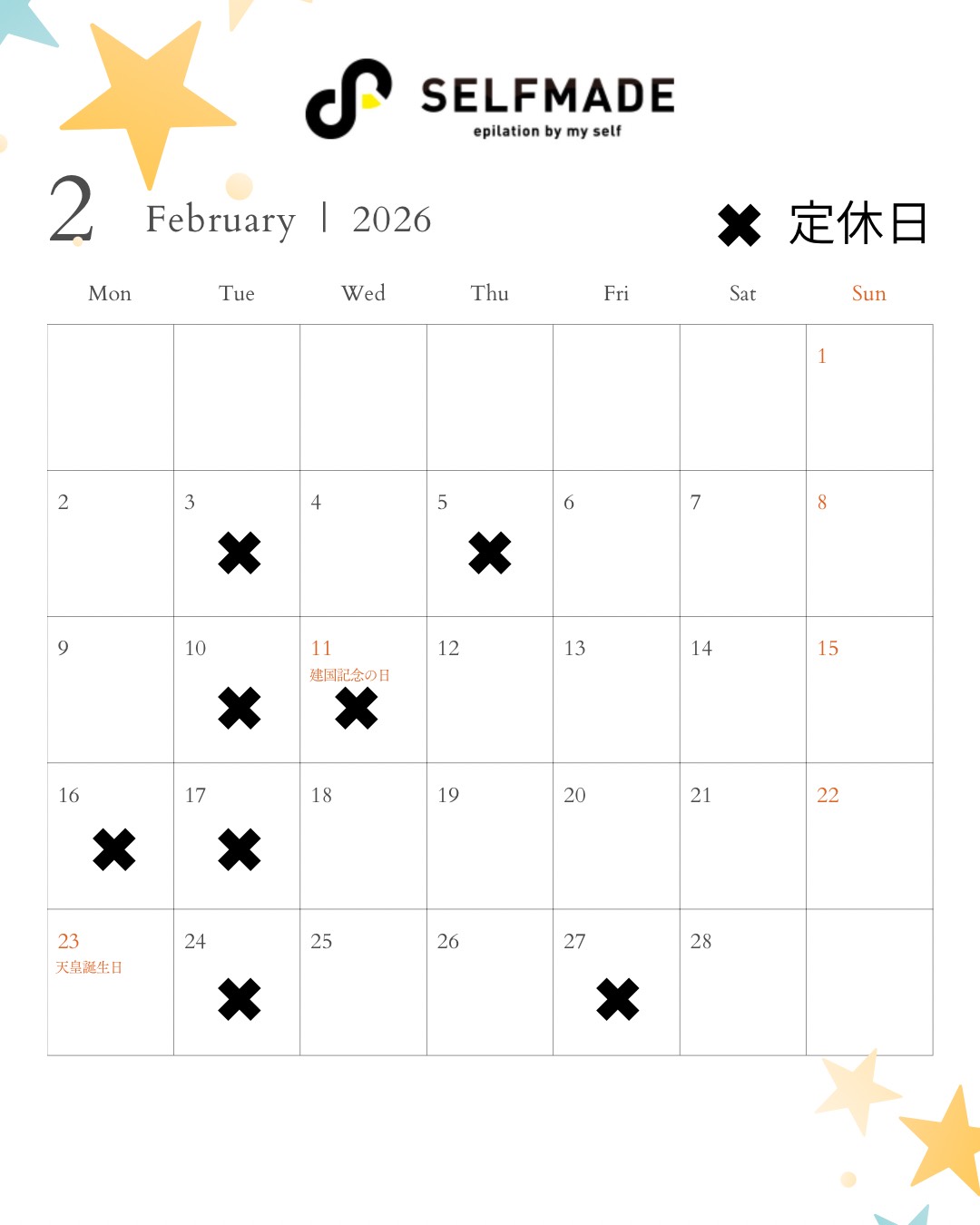 2月の定休日のお知らせをさせて頂きます💁🏻♪
