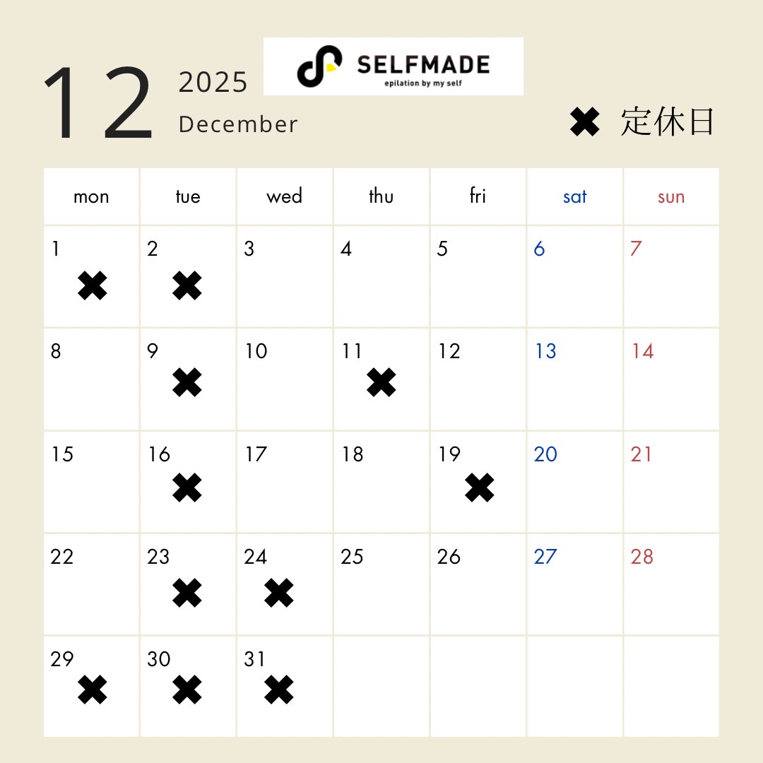 12月の定休日のお知らせをさせて頂きます💁🏻♪