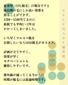 #美肌#毛穴レス #SHR脱毛 #光脱毛 #個室