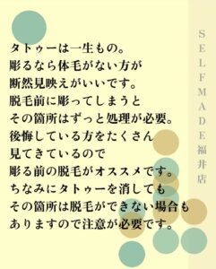 【福井店blog】タトゥー部分は脱毛できる?施術前にしっておきたいこと