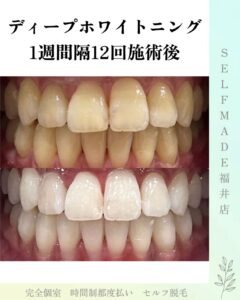 セルフメイドでは、黄ばんでしまった歯を綺麗にしていただけるディープホワイトニングを提供させていただいております。
