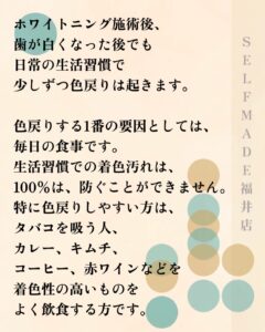 ①着色しやすい飲食物に気をつける。