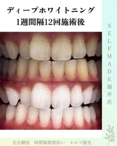 セルフメイドでは、黄ばんでしまった歯を綺麗にしていただけるディープホワイトニングを提供させていただいております。