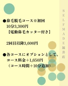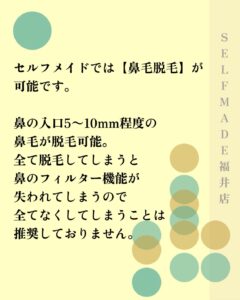 セルフメイドでは、鼻毛脱毛が可能です👌