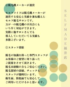 セルフメイドはしっかりと効果が出るスタッフ常駐のセルフ脱毛サロン!