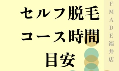 こんにちは。 セルフメイド福井店です😊 当店のセルフ脱毛は3つのコースからお選び頂けます。 最初は、何分かかるのかイメージがつかないかと思います。 初来店時は、…