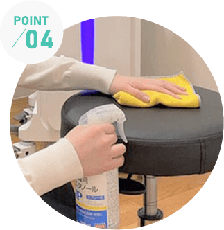 衛生管理もばっちり備品やマシンは使うたび殺菌消毒。医療現場でも使われている特殊な殺菌消毒剤を使用しているため、安心してお使いいただけます。