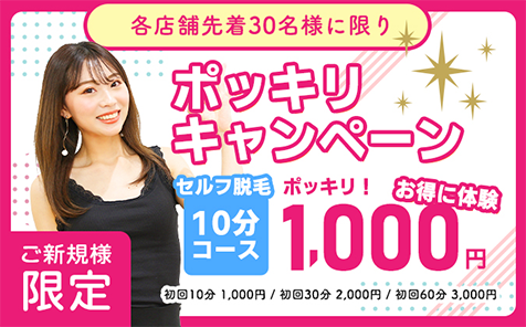 新規でご利用の方に特別価格のキャンペーン! 今だけ1,000円ぽっきり!~からのキャンペーン価格で気軽に初!セルフ脱毛体験。 SELFMADEを初めてご利用の方…