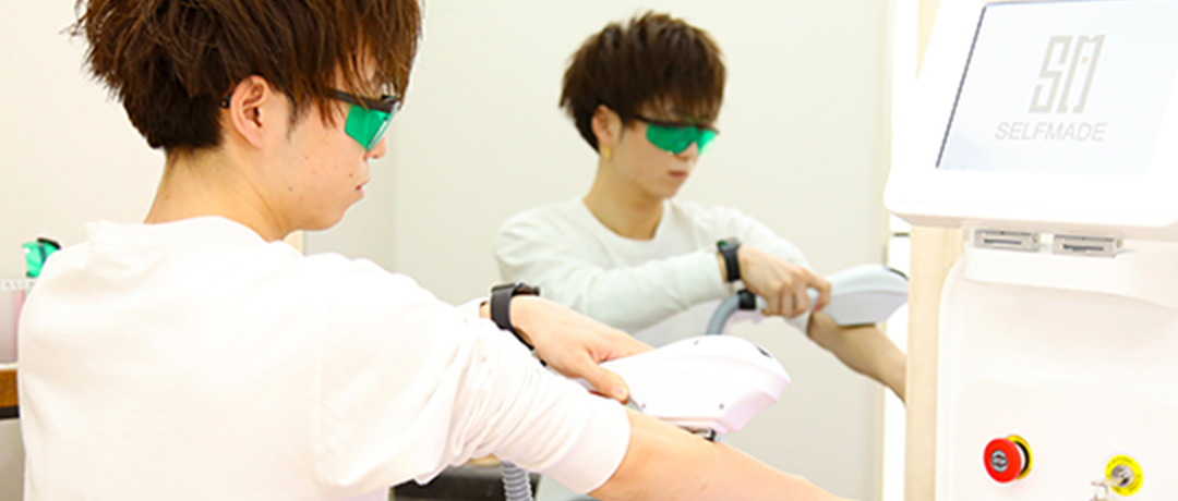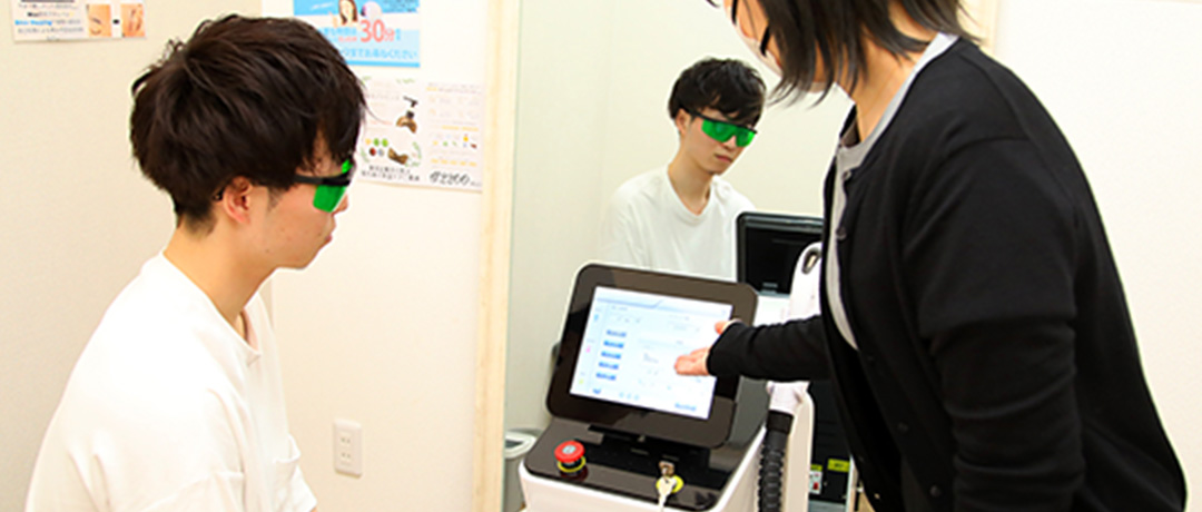 お客様のお肌の状態(肌荒れの有無、肌色や毛の量や太さ)から最適な出力を設定し実際に照射してみて問題ないかを確認するパッチテストを行います。この時に合わせて脱毛機を実際に使いながら脱毛機の使用方法をご説明いたします。とても簡単なのでどなたでもすぐにマスターできます。