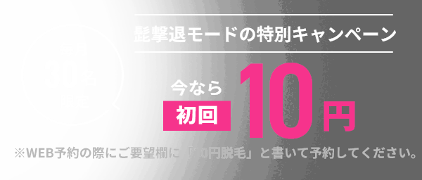 ※WEB予約の際、初回10分コースを選び、ご要望欄に「10円脱毛」と書いて予約してください