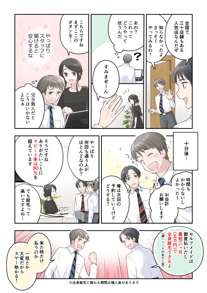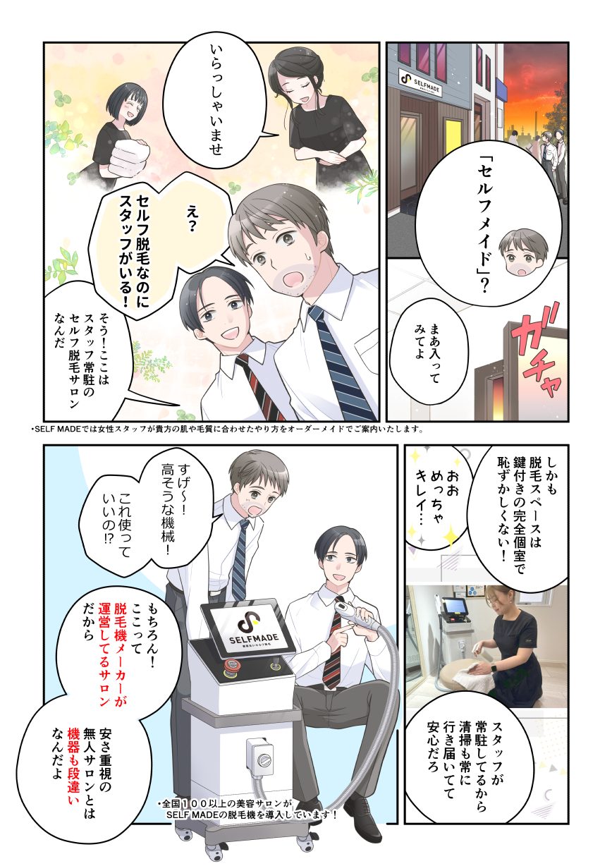 セルフメイドはスタッフ常駐型ですが施術自体をお客様にお願いすることで低コスト化を実現しました!